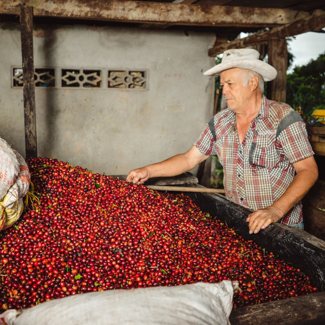 De familie Perdomo – Rojas telen met respect voor de natuur en maken gebruik van omgevingselementen zoals water uit de waterval, schaduw van grote bomen en de zon om de koffiebessen te laten rijpen. Alle stappen in het proces gebeuren circulair op hun eigen koffieplantage op een milieuvriendelijke en duurzame manier.