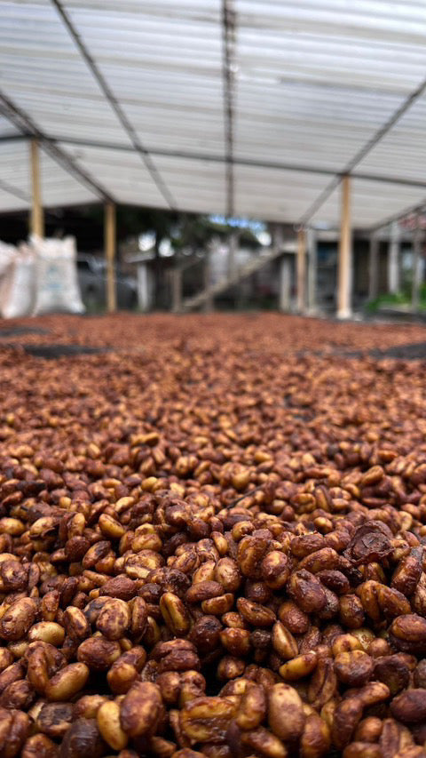 Bij de honey processing worden de koffiebessen ontpulpt, waarbij de buitenste schil wordt verwijderd maar een deel van het kleverige vruchtvlees (mucilage) op de boon achterblijft. De bonen drogen vervolgens met dit laagje nog om zich heen. Tijdens het drogen karamelliseren de natuurlijke suikers, wat zorgt voor een koffie met een rijke zoetheid, volle body en een zachte aciditeit.