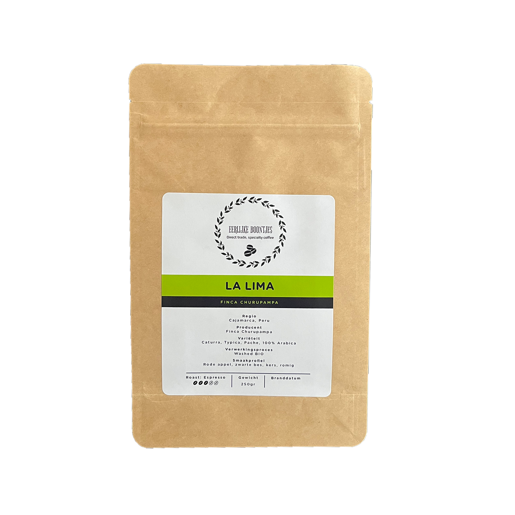 La Lima komt van Finca Churupampa, een duurzame familiekoffieplantage in Peru. Deze koffie betovert je met frisse tonen van rode appel, zwarte bes en kers. Perfect in balans, of je hem nu zet als filterkoffie, espresso of een romige cappuccino.