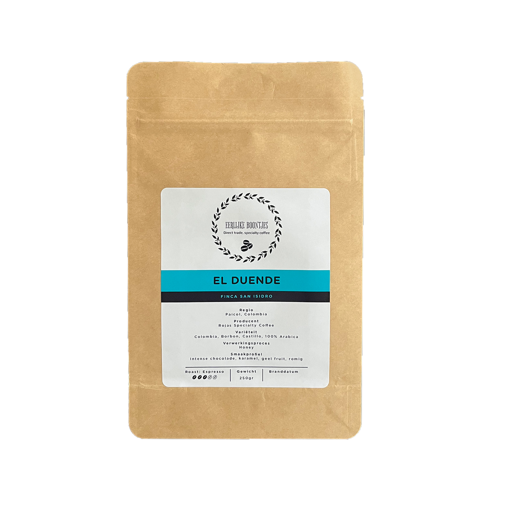 Deze bijzondere koffie komt van de familie Perdomo- Rojas in Colombia. Vernoemd naar de waterval naast de plantage Finca San Isidro, biedt El Duende intense smaken van chocolade, karamel en geel fruit. Een rijke en uitnodigende koffie, perfect als espresso of cappuccino.